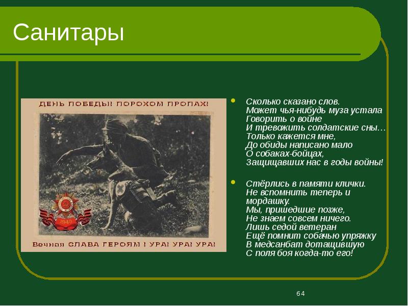- 64. Санитары Сколько сказано слов. Может чья-нибудь муза устала Говорить о войне