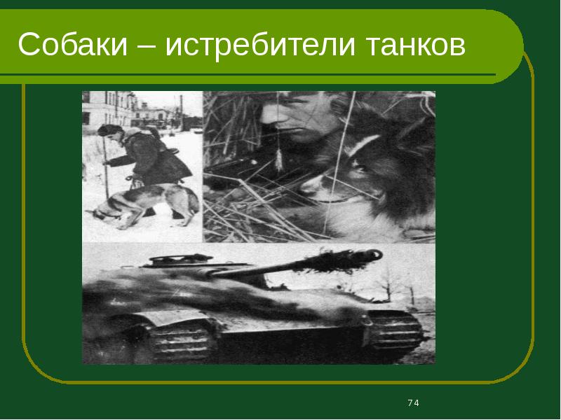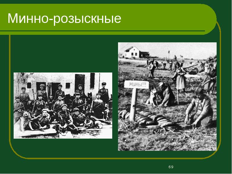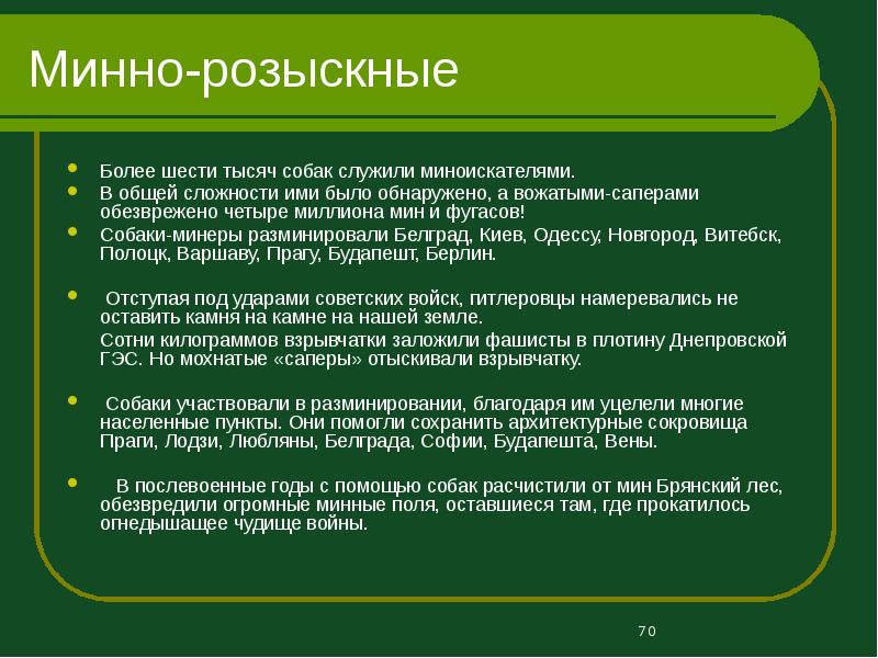 - 70. Минно-розыскные Более шести тысяч собак служили миноискателями. В общей сложности