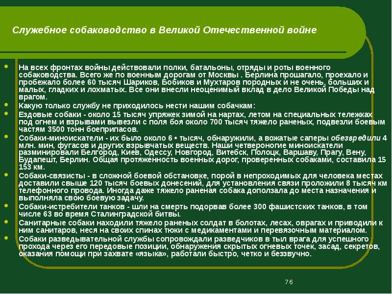 - 76. Служебное собаководство в Великой Отечественной войне На всех фронтах войны