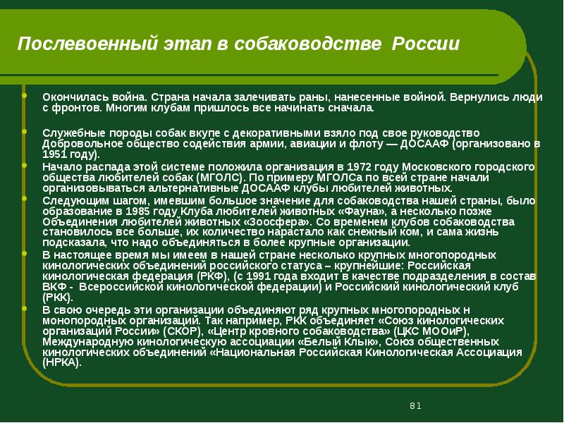 - 81. Послевоенный этап в собаководстве России Окончилась война. Страна начала залечивать раны,