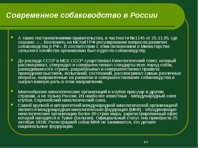 - 84. Современное собаководство в России А также постановлениями правительства, в частности №1145