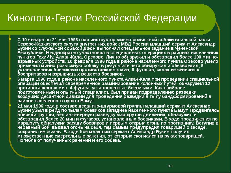 - 89. Кинологи-Герои Российской Федерации С 10 января по 21 мая 1996 года