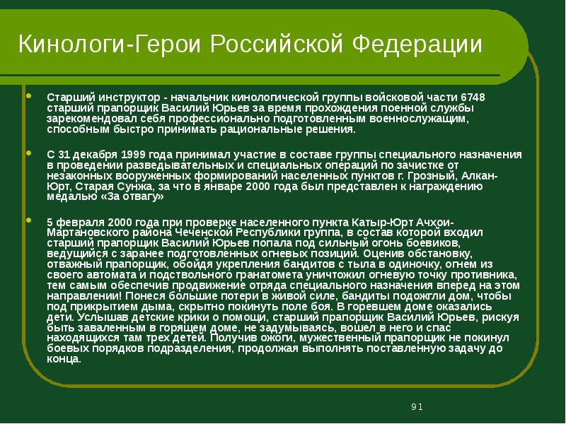 - 91. Кинологи-Герои Российской Федерации Старший инструктор - начальник кинологической группы войсковой части
