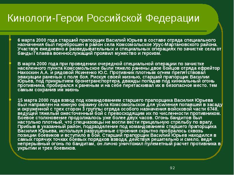 - 92. Кинологи-Герои Российской Федерации 6 марта 2000 года старший прапорщик Василий Юрьев