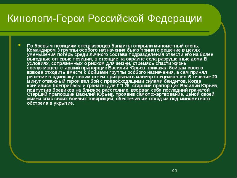 - 93. Кинологи-Герои Российской Федерации По боевым позициям спецназовцев бандиты открыли минометный огонь.