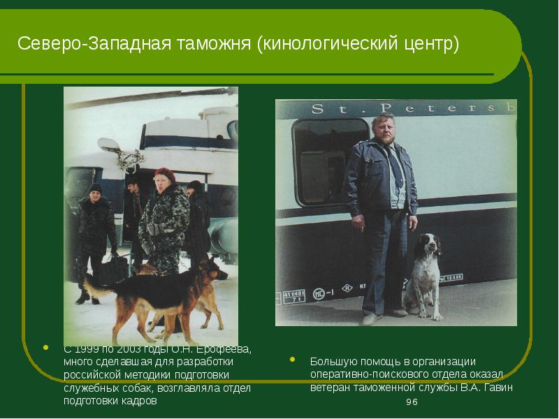 - 96. Северо-Западная таможня (кинологический центр) С 1999 по 2003 годы О.Н. Ерофеева,