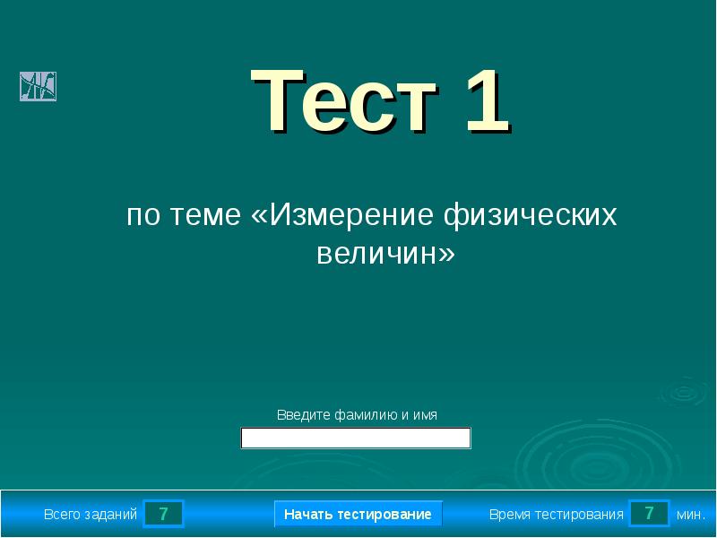 Презентация на тему Измерение физических величин Тест 1 доступна для скачивания ниже:
