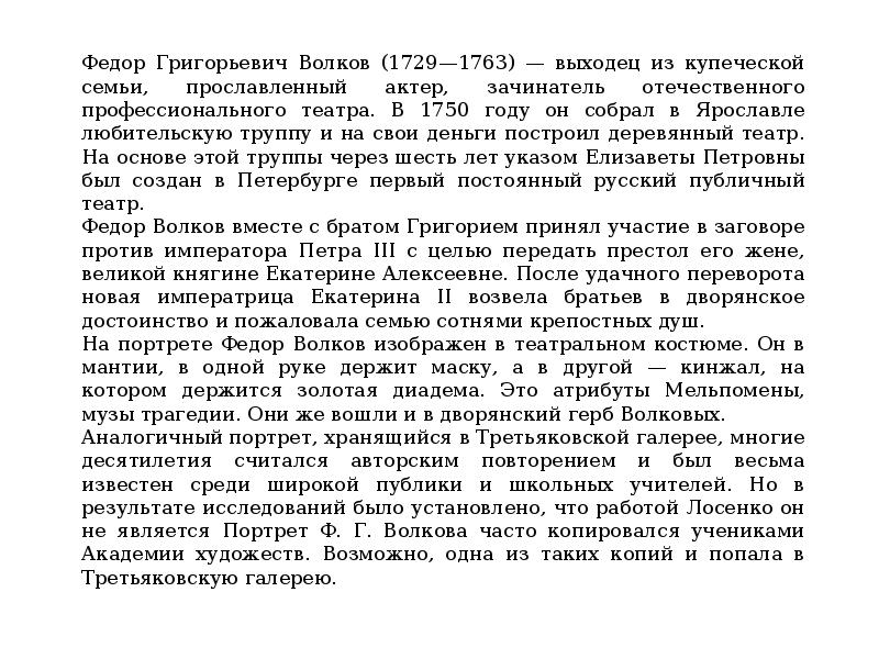 - 16. Антон Павлович Лосенко Портрет Ф. Г. Волкова 1760 (?) 67 х53