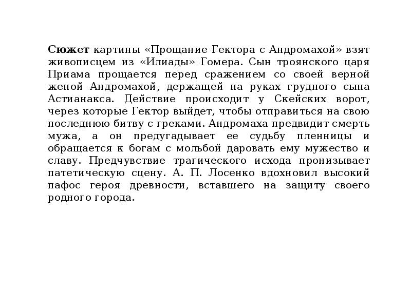 - 22. Антон Павлович Лосенко «Прощание Гектора с Андромахой» 1773 г. Холст, масло.