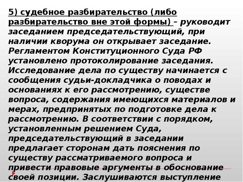 - 5. КОНСТИТУЦИОННОЕ СУДОПРОИЗВОДСТВО Так называется судопроизводство в Конституционном Суде (КС). В КС