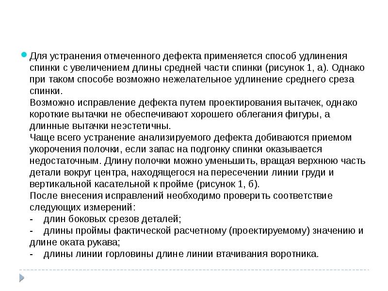- 26. Короткая спинка. Укорочение спинки относительно полочки приводит к смещению частей одежды