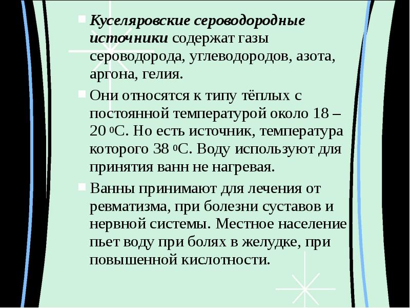 Презентация на тему Куселяровские сероводородные источники доступна для скачивания ниже: