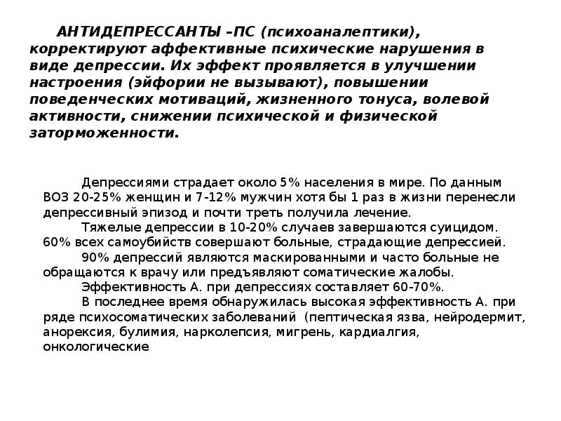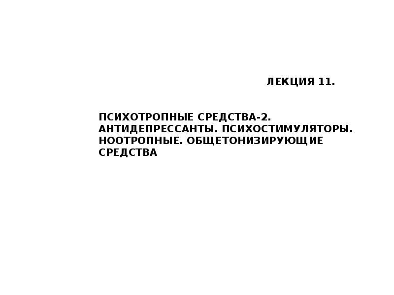 ЛЕКЦИЯ 11. ПСИХОТРОПНЫЕ СРЕДСТВА-2. АНТИДЕПРЕССАНТЫ. ПСИХОСТИМУЛЯТОРЫ презентация