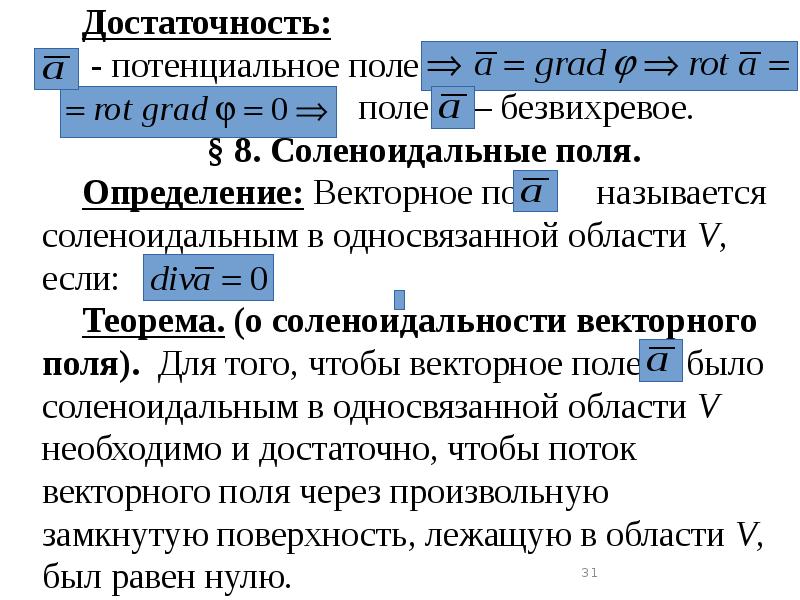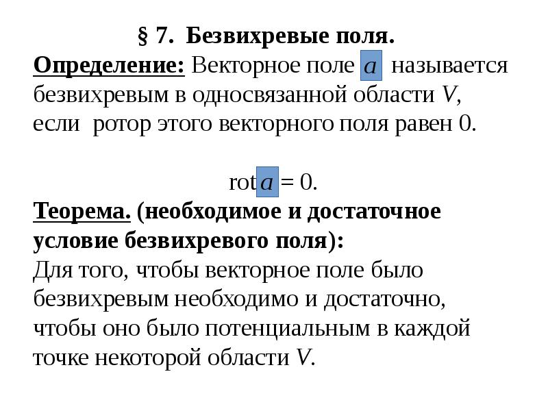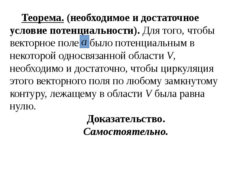 - 24. Определение. Векторное поле называется потенциальным, в некоторой односвязанной области V,