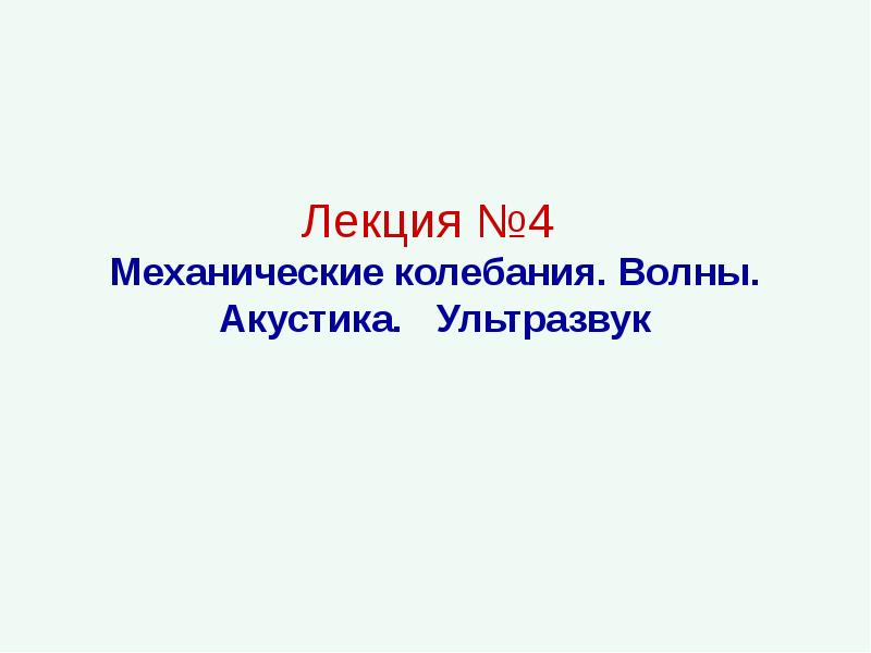 Лекция №4 Механические колебания. Волны. Акустика. Ультразвук презентация