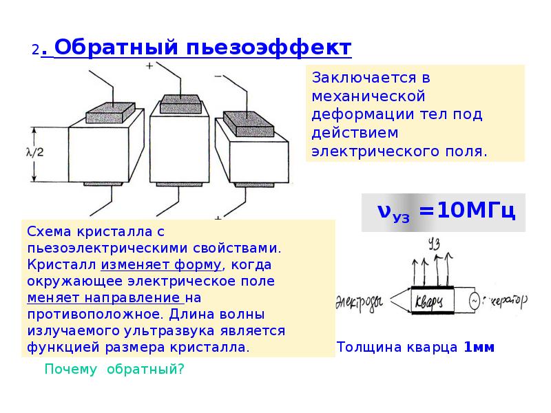 - 43. Получение ультразвуковых колебаний Электромеханические излучатели: Основанные на явлении обратного пьезоэлектрического эффекта