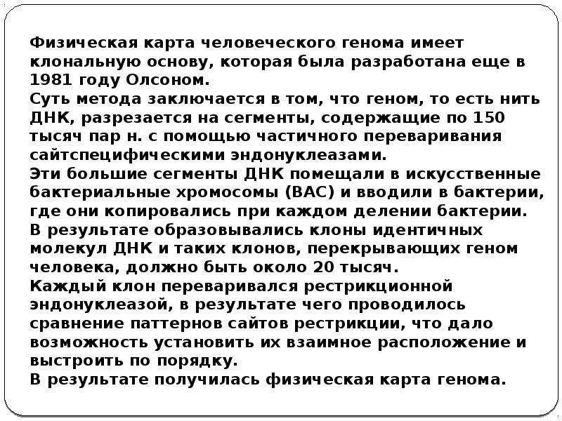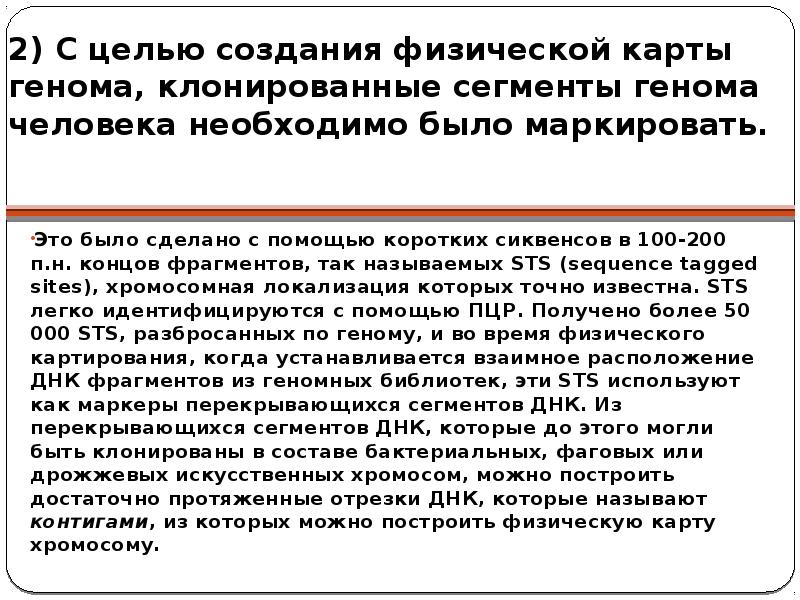 - 16. 2) С целью создания физической карты генома, клонированные сегменты генома человека