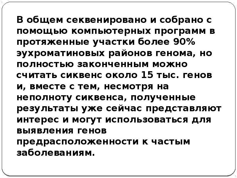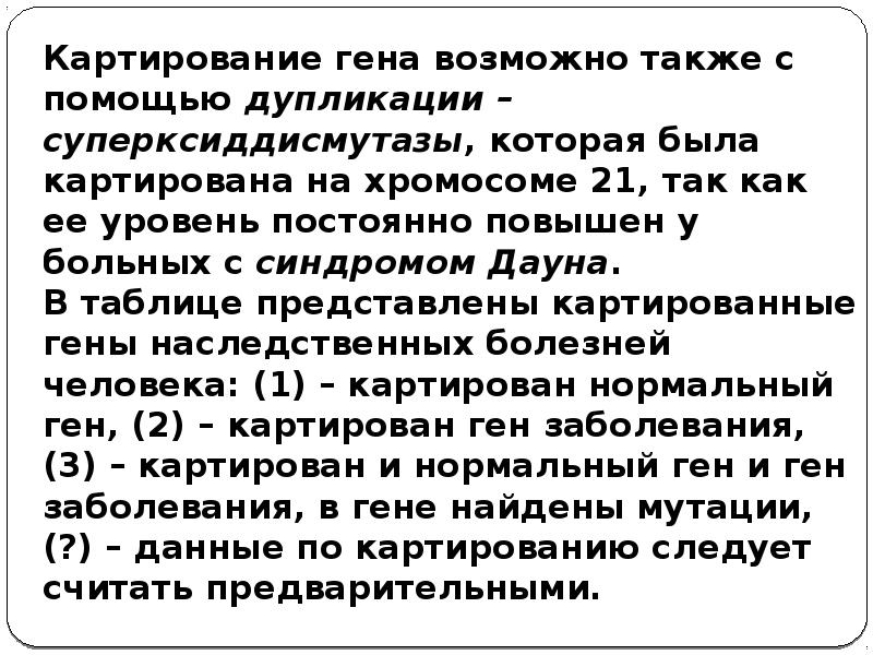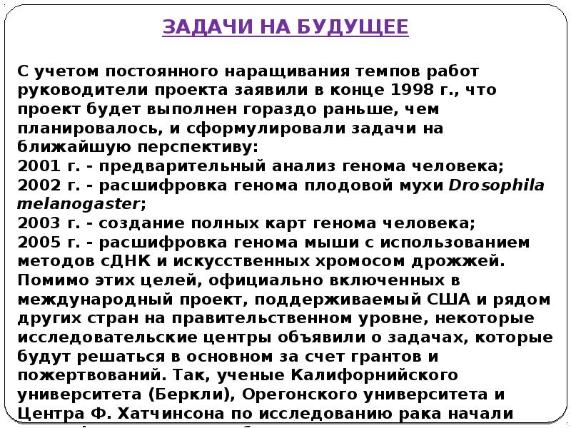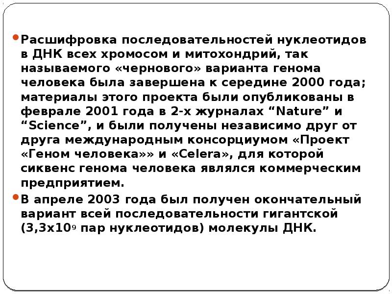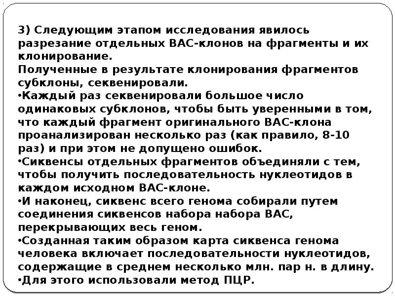 - 10. 1) Точная генетическая карта генома человека создавалась при выполнении двух условий: