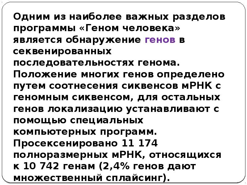 - 9. При проведении программы «Геном человека» были определены три основные цели этой