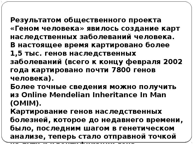 Лекция 7 ПРОЕКТ «ГЕНОМ ЧЕЛОВЕКА». КАРТЫ ГЕНОВ НАСЛЕДСТВЕННЫХ ЗАБОЛЕВАНИЙ презентация
