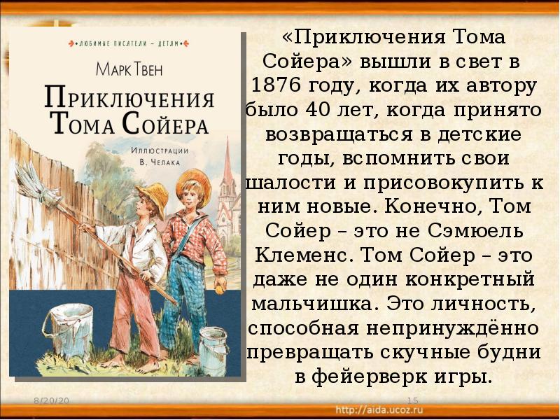 Марк Твен. Слово о писателе. «Приключения Тома Сойера». Черты характера Тома, презентация