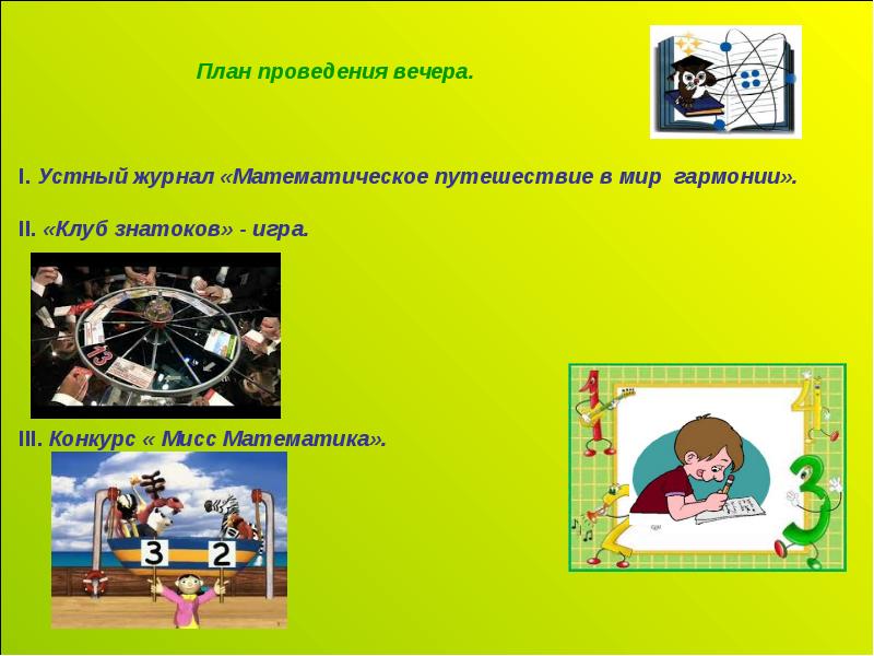 Презентация на тему Математический вечер для старшеклассников доступна для скачивания ниже: