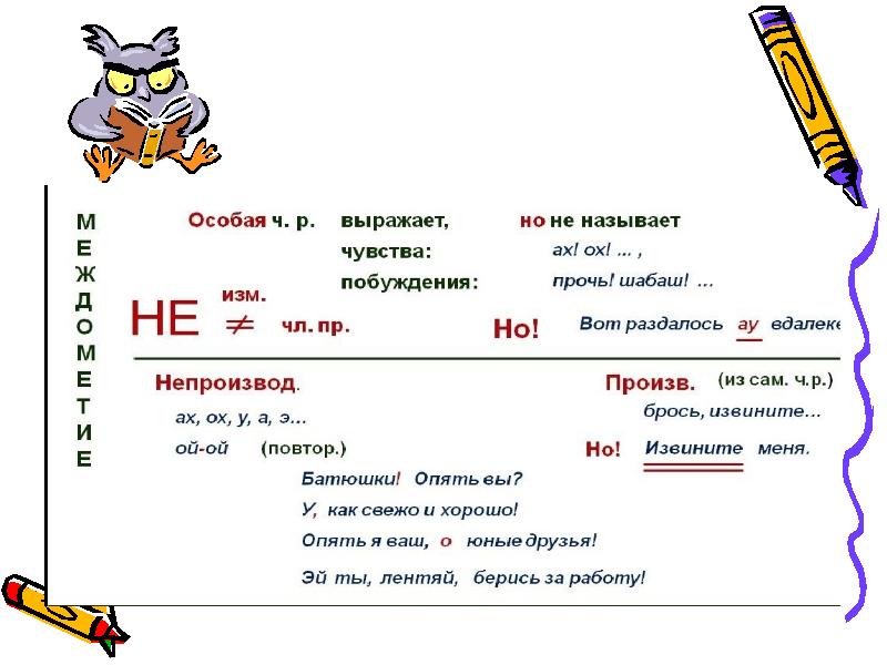 - 10. Производные и непроизводные междометия Междометия бывают непроизводными: ах, ох,