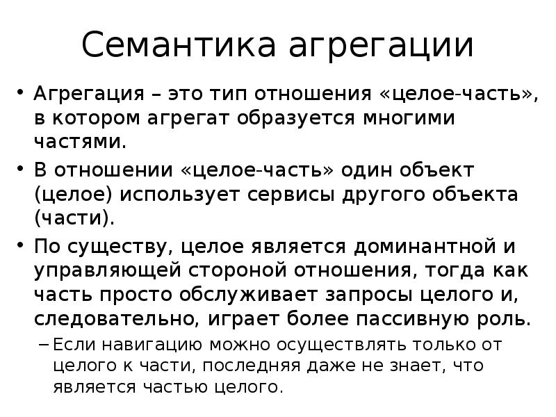 Агрегация – это тип отношения «целое-часть», в котором агрегатПример агрегации
