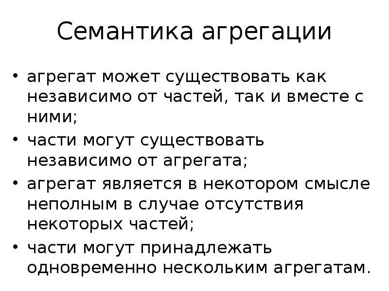 агрегат может существовать как независимо от частей, так иАгрегация транзитивна