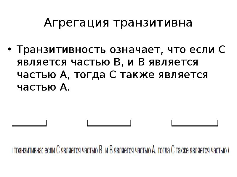 Транзитивность означает, что если C является частью B, иАгрегация асимметрична