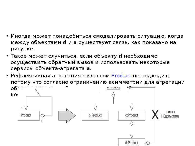 Это означает, что объект никогда – ни прямо, ниИногда может понадобиться смоделировать ситуацию, когда между объектами d и aПоэтому для обработки связи между объектами d и a необходимо использоватьАссоциация симметрична