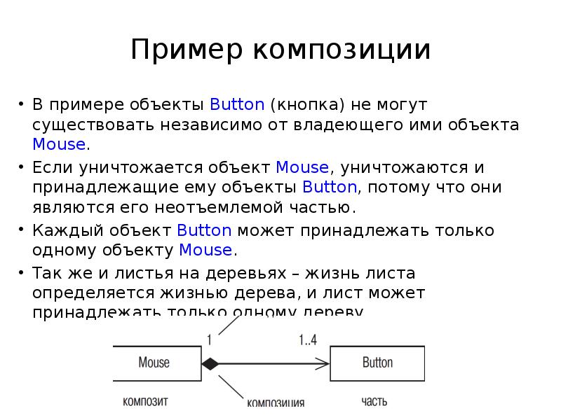 В примере объекты Button (кнопка) не могут существовать независимоСемантика композиции