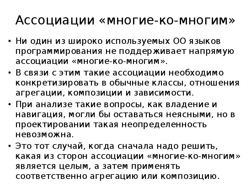Ни один из широко используемых ОО языков программирования неПример ассоциации «многие-ко-многим»