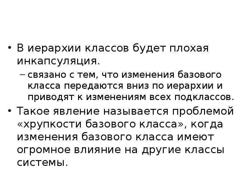 ОноВ иерархии классов будет плохая инкапсуляция.