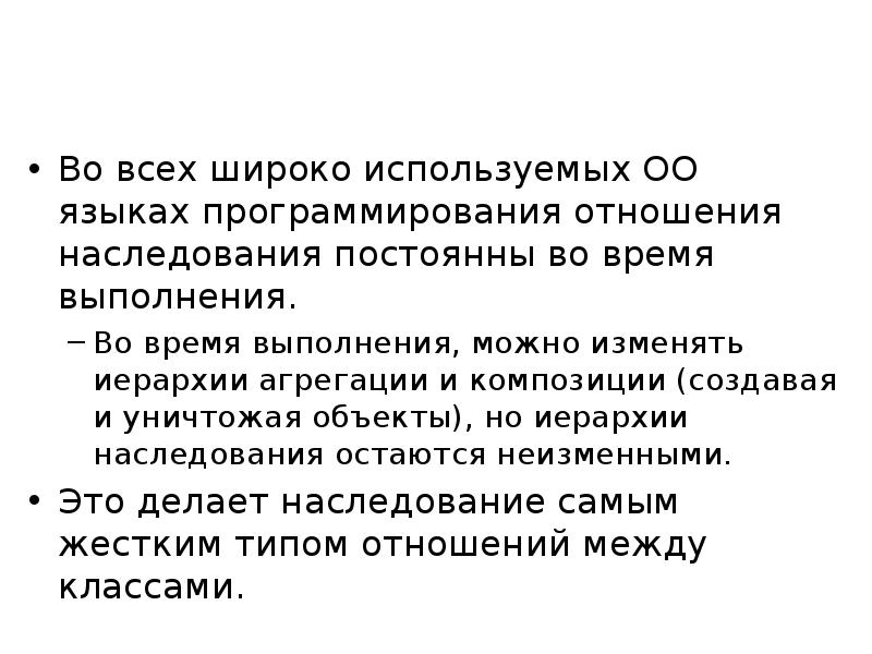 связано с тем, чтоВо всех широко используемых ОО языках программирования отношения наследования постоянны воПример