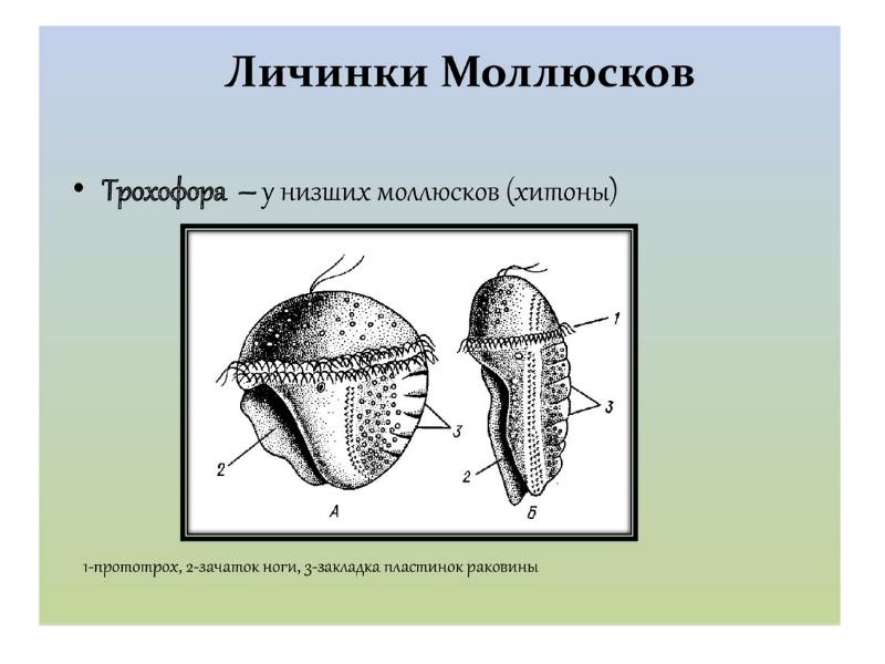 - 47. Класс Брюхоногие – Gastropoda развитие с метаморфозом у примитивных морских видов
