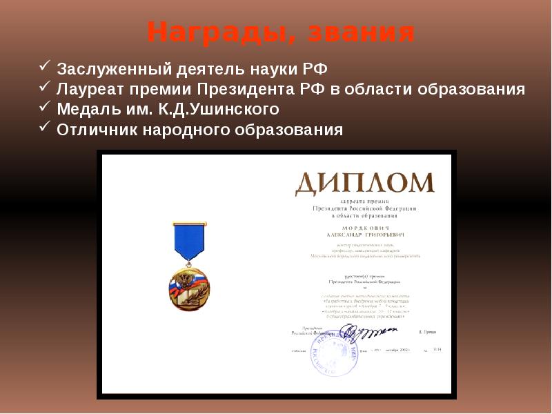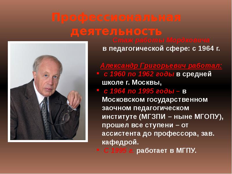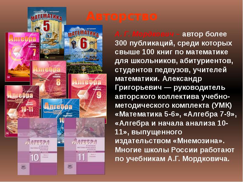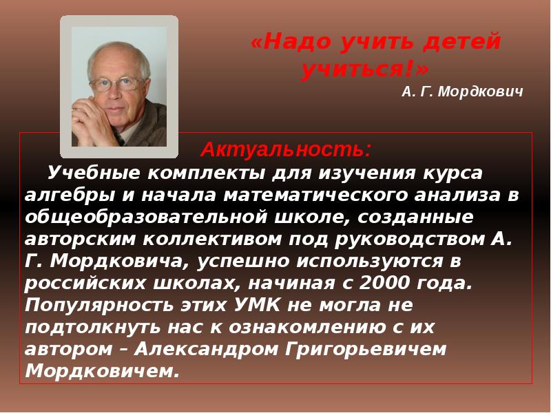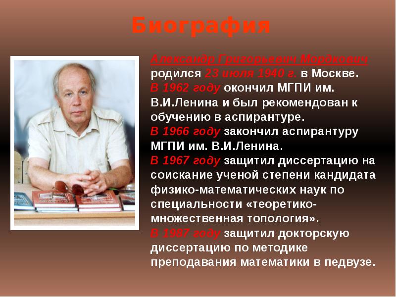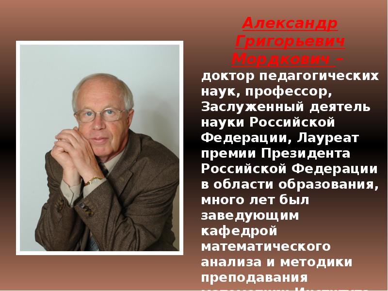 Презентация на тему Мордкович А.Г. Профессор, автор, человек доступна для скачивания ниже: