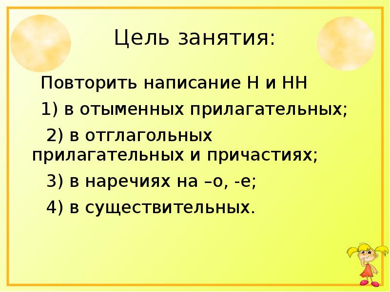 - 2. Цель занятия: Повторить написание Н и НН 1)