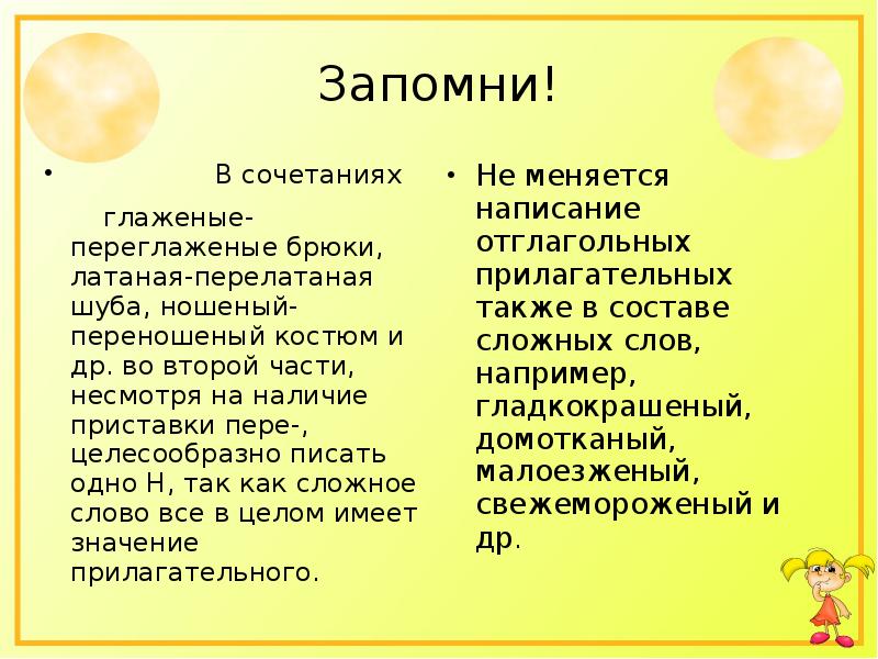 - 7. Запомни! В сочетаниях глаженые-переглаженые