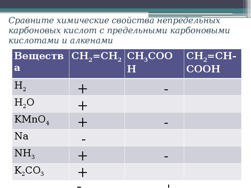 Химические свойства Реакционная способность ненасыщенных кк обусловлена наличием карбоксильной группы