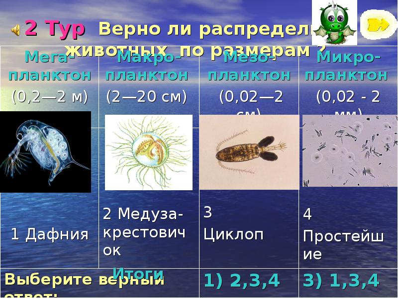 - 13. 2 Тур Верно ли распредели животных по размерам ?