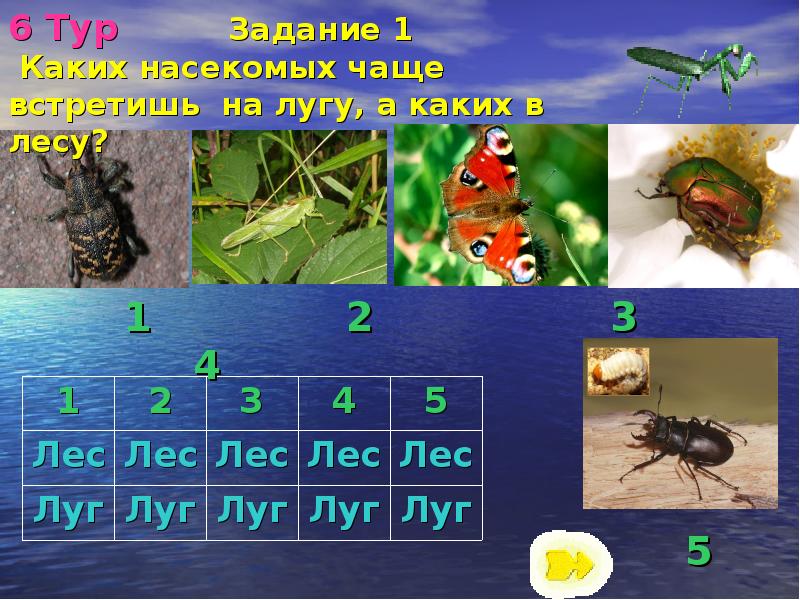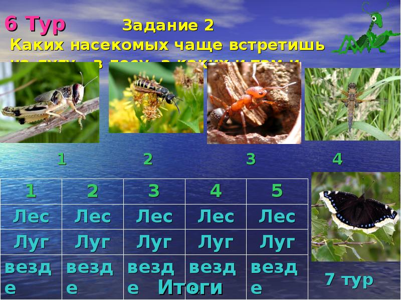 - 18. 6 Тур Задание 1 Каких насекомых чаще встретишь на