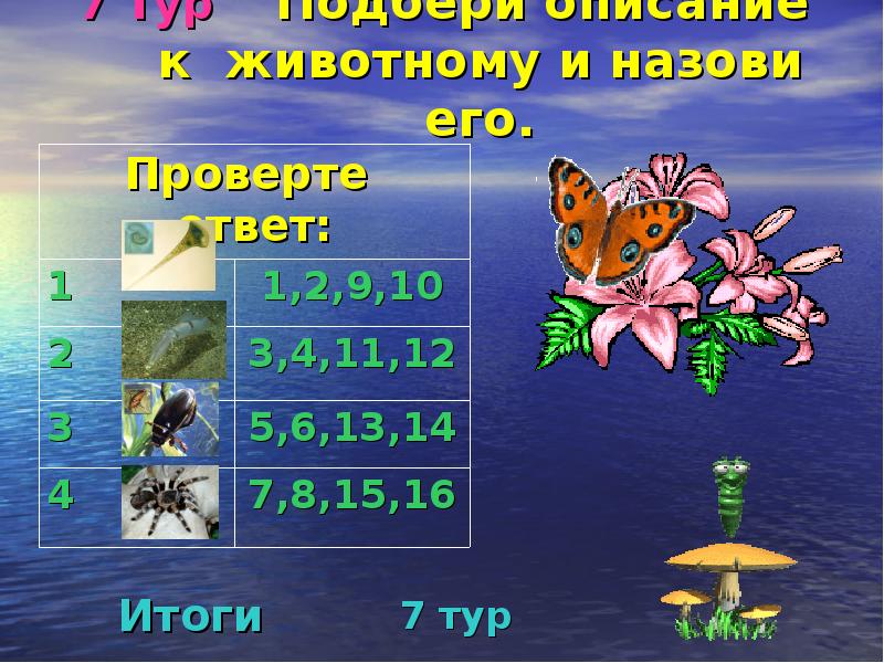 - 22. 7 Тур Подбери описание к животному и назови его.