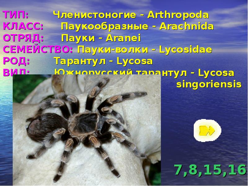 - 27. ТИП: Членистоногие - Arthropoda КЛАСС: Паукообразные - Arachnida ОТРЯД: