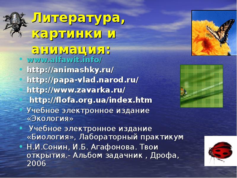 - 29. Литература, картинки и анимация: www.alfawit.info/ http://animashky.ru/ http://papa-vlad.narod.ru/ http://www.zavarka.ru/ http://flofa.org.ua/index.htm Учебное электронное