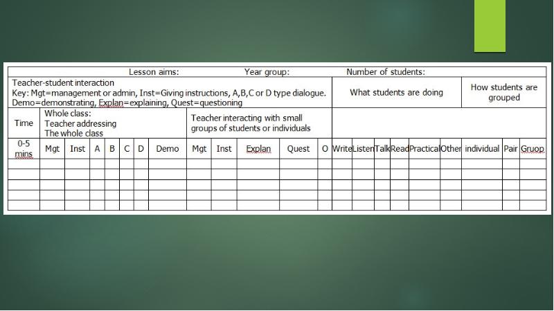 - 16. The observation schedule Must have a clear focus and be easy