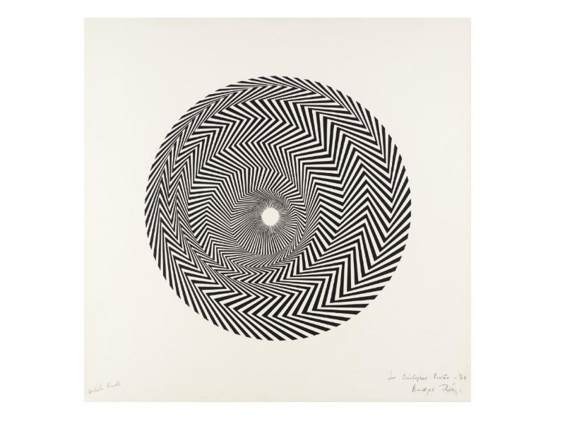 - 9. Бриджет Райли. Пламя.1964 год. Зигзагообразные черные и белые линии создают ощущение кругового