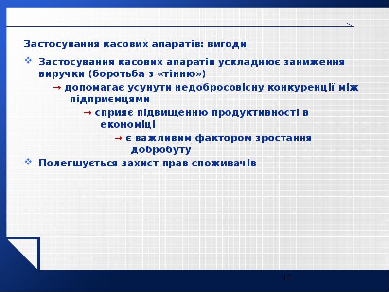 - 11. Застосування касових апаратів: вигоди Застосування касових апаратів: вигоди Застосування касових апаратів