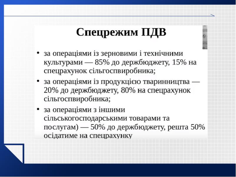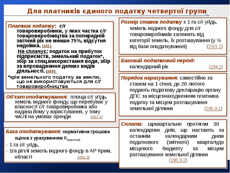 - 29. Для платників єдиного податку четвертої групи Платник податку: с/г товаровиробники, у