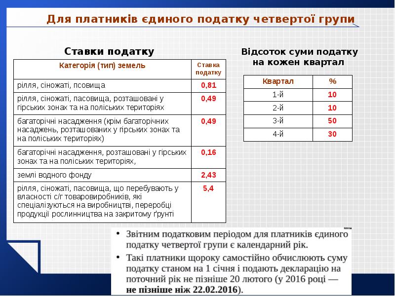 - 30. Для платників єдиного податку четвертої групи